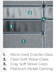 Modern design comes to life through strong linear lines interrupted by bold pops of gray glass. Crosswalk's look is abstract, modern, and stylish. Crosswalk offers a high privacy level.