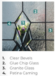 A distinct geometric pattern defined by a patina finish and accented with clear bevels gives your home the Classic styling you desire. Jameston is also a smart choice: Its timeless design provides long-term value for you. Jameston offers a medium-high level of privacy.